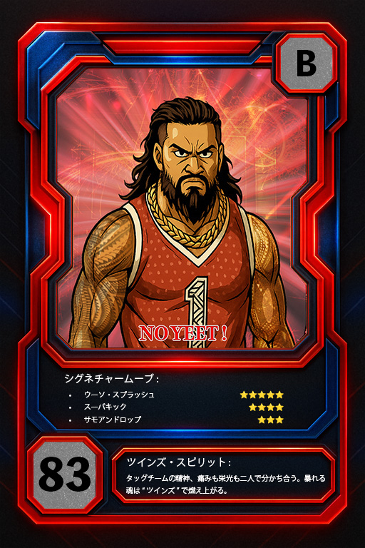 ジェイコブ・ファトゥ(Jacob Fatu) | 2024年以降:新勢力の台頭により、ジミーの立場や役割が再び揺れ動く。伝統と新世代のはざまで、自身のアイデンティティをどう示すのかが大きな焦点になっている。 |